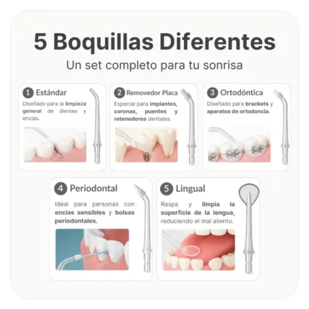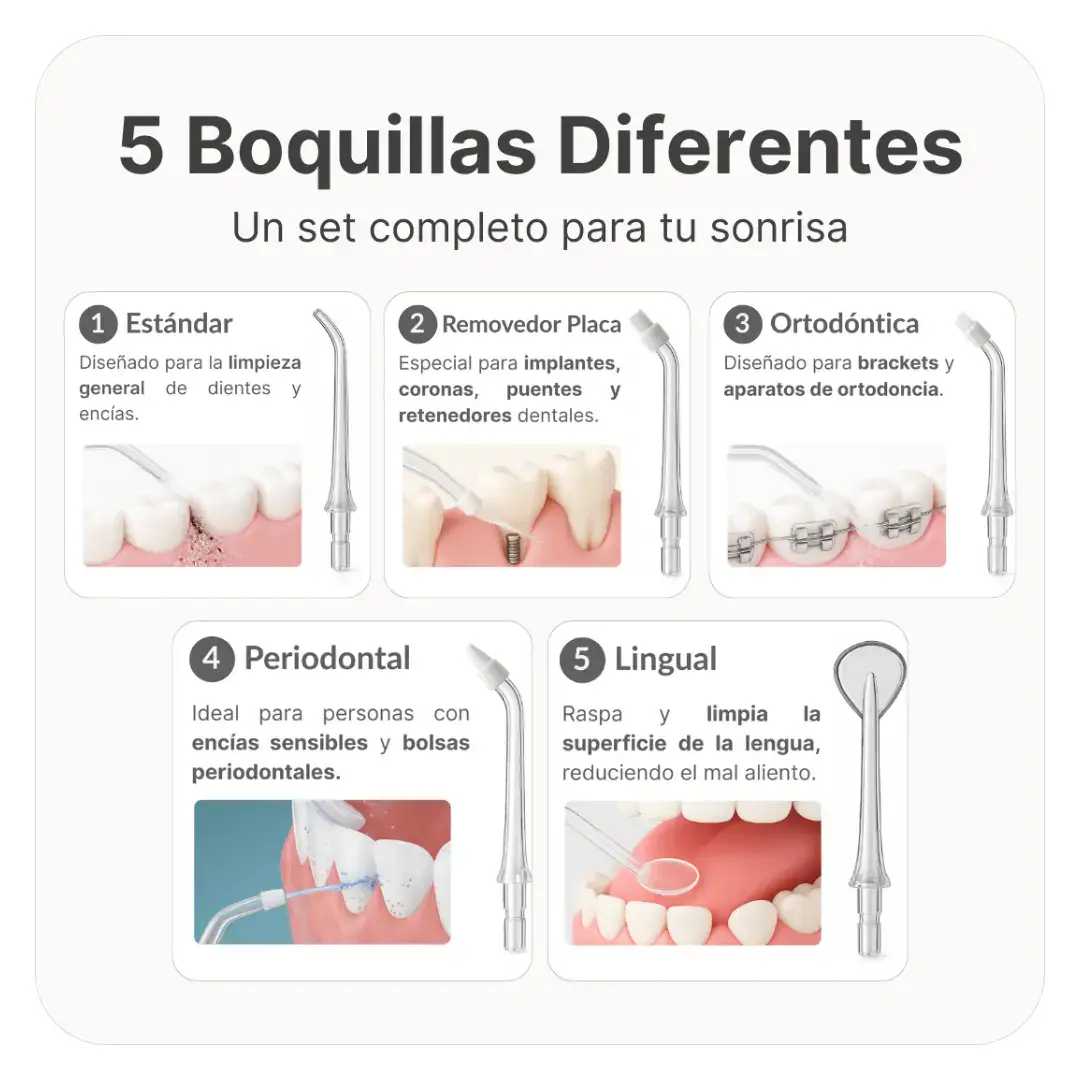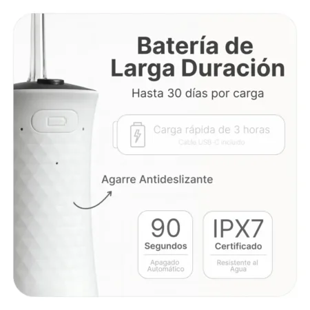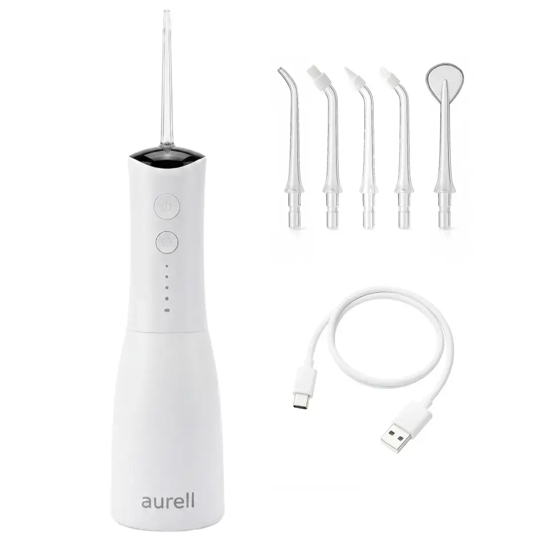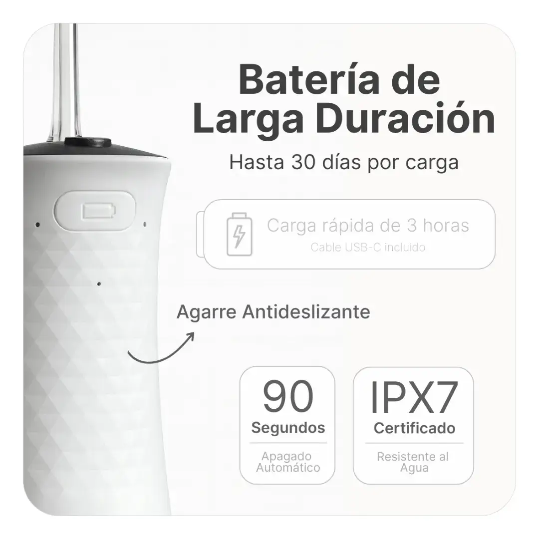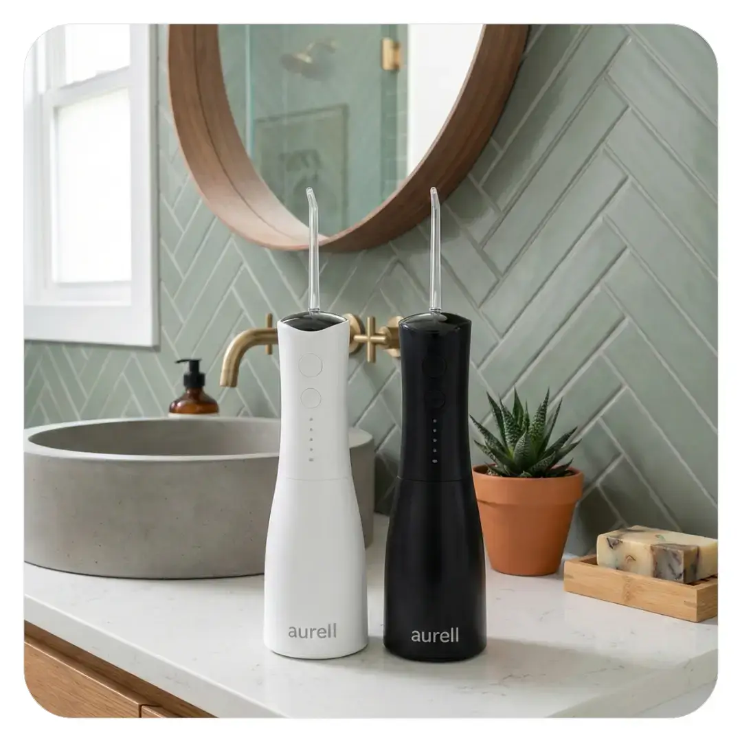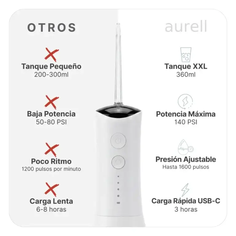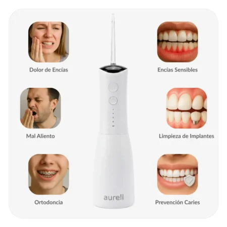 El irrigador dental aurell complementa el cepillado con un potente flujo de agua a presión y ajustable.